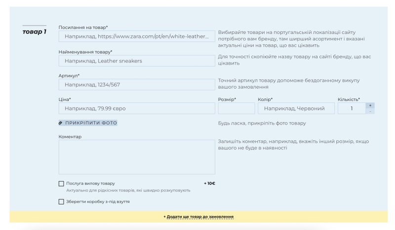 <p>Це досить просто. Ви можете скопіювати посилання та артикули товарів, які вам потрібні, і вставити їх у форму замовлення на нашому веб-сайті. Важливо не забути вказати потрібний розмір і колір. У особистому кабінеті ви зможете перевірити, чи всі дані вірні, і внести необхідні корекції.</p>